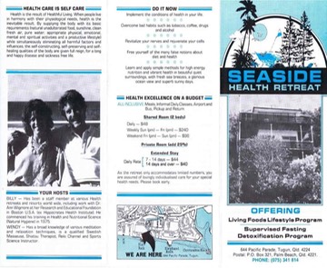 In the late 80’s my girlfriend Wendy and I opened the Seaside Health Retreat on the Gold Coast, Queensland, Australia. The retreat provided a cozy, beachside live in, learn-by-doing, health and fitness program based on: